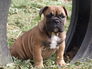 Elevage de Old English Bulldog Standard et Miniature. Nos chiens et chiots évoluent dans la campagne bourguignonne. Chiens élevés de manière rustique, sans hypertype, de gabarit moyen. Vous ne trouverez pas de monstres dans notre modeste élevage, mais un compagnon de vie de tous les jours, bien dans sa peau et sa tête.